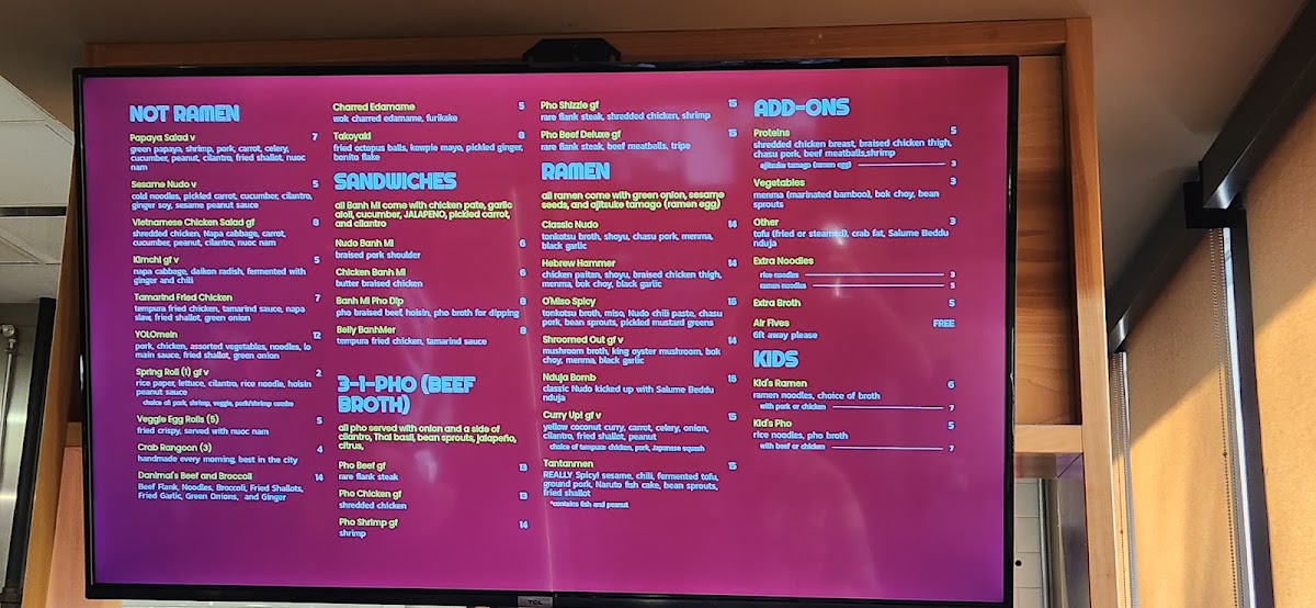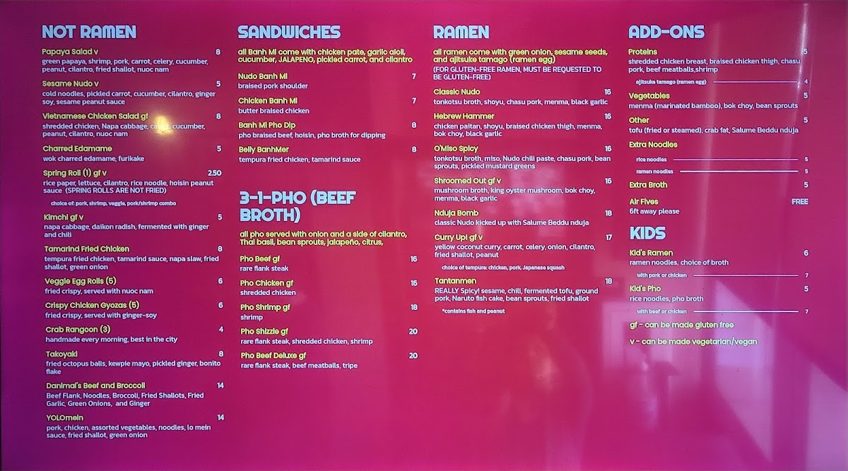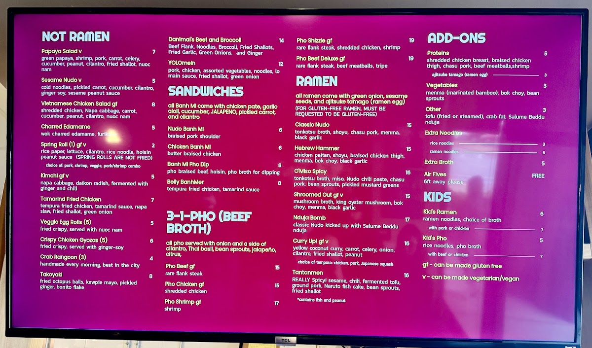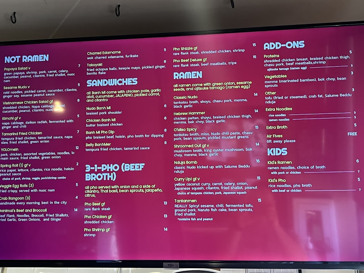 Nudo House Creve Coeur offers a vibrant menu where authentic Asian fusion meets comforting, expertly crafted dishes. The standout appetizers, like the crunchy Nudo Salad featuring lotus root with shrimp and pork, and the refreshing Sesame Nudo cold noodle salad, set the tone for a culinary journey. Their Pho soups are a must-try—delicately balanced with rare flank steak or tender chicken breast, paired with fresh herbs, jalapeños, and citrus, delivering a fragrant, bright experience. For ramen lovers, the Classic Nudo Ramen in rich tonkotsu broth and the Hebrew Hammer Ramen with chicken paitan broth stand out, each bowl boasting house-made chashu or chicken thigh, perfectly seasoned eggs, and black garlic that deepens the umami profile.